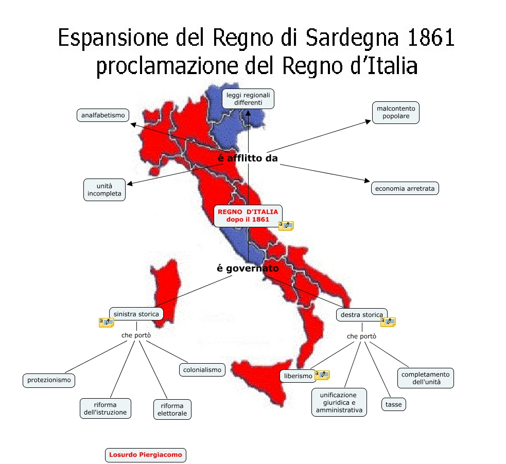 Questa Cmap, creata con IHMC CmapTools, contiene informazioni relative a: il regno d'italia dopo il 1861 (Losurdo Piergiacomo), REGNO D'ITALIA dopo il 1861 é afflitto da unità incompleta, destra storica che portò unificazione giuridica e amministrativa, REGNO D'ITALIA dopo il 1861 é afflitto da economia arretrata, REGNO D'ITALIA dopo il 1861 é governato sinistra storica, destra storica che portò completamento dell'unità, REGNO D'ITALIA dopo il 1861 é afflitto da analfabetismo, REGNO D'ITALIA dopo il 1861 é afflitto da malcontento popolare, sinistra storica che portò colonialismo, sinistra storica che portò protezionismo, sinistra storica che portò riforma dell'istruzione, REGNO D'ITALIA dopo il 1861 é governato destra storica, destra storica che portò liberismo, destra storica che portò tasse, sinistra storica che portò riforma elettorale, REGNO D'ITALIA dopo il 1861 é afflitto da leggi regionali differenti