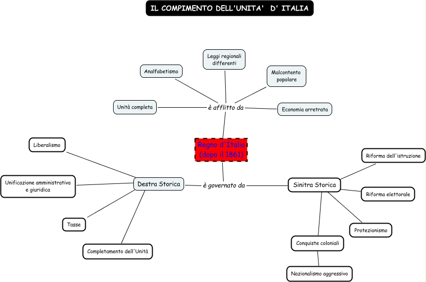 Questa Cmap, creata con IHMC CmapTools, contiene informazioni relative a: il compimento dell'unità d'italia (Alessandro Racanelli 3 C), Regno d'Italia (dopo il 1861) è afflitto da Economia arretrata, Sinitra Storica ???? Riforma dell'istruzione, Destra Storica ???? Completamento dell'Unità, Regno d'Italia (dopo il 1861) è afflitto da Malcontento popolare, Regno d'Italia (dopo il 1861) è governato da Sinitra Storica, Sinitra Storica ???? Protezionismo, Sinitra Storica ???? Conquiste coloniali, Regno d'Italia (dopo il 1861) è afflitto da Leggi regionali differenti, Destra Storica ???? Unificazione amministrativa e giuridica, Conquiste coloniali ???? Nazionalismo aggressivo, Destra Storica ???? Tasse, Destra Storica ???? Liberalismo, Regno d'Italia (dopo il 1861) è afflitto da Unità completa, Regno d'Italia (dopo il 1861) è afflitto da Analfabetismo, Sinitra Storica ???? Riforma elettorale, Regno d'Italia (dopo il 1861) è governato da Destra Storica