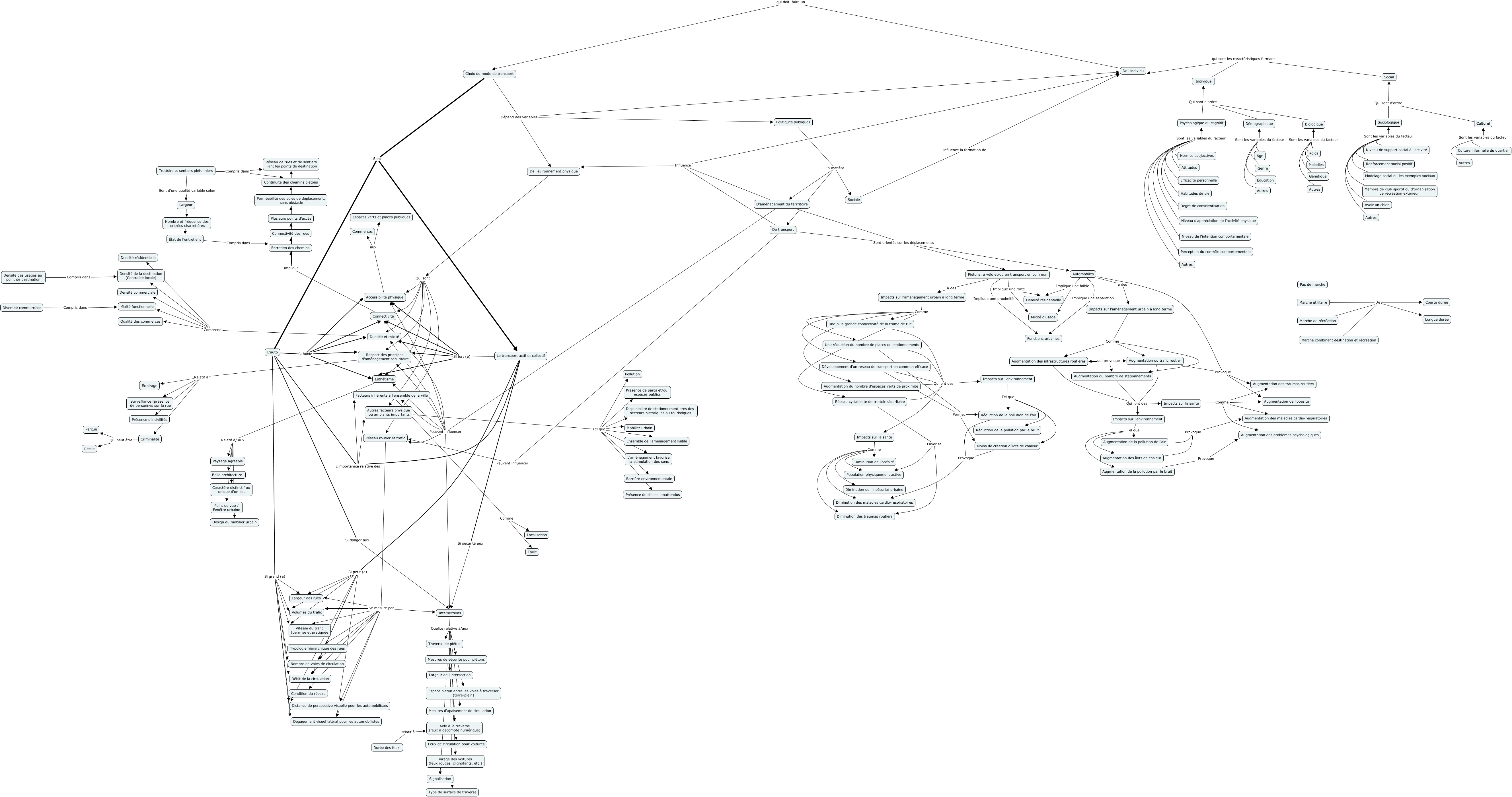 Cette carte de concepts créée avec IHMC CmapTools traite de: Révision 3, L'auto Si faible Esthétisme, Choix du mode de transport Sont L'auto, Automobiles Implique une faible Densité résidentielle, Autres facteurs physique ou ambiants importants Tel que L'aménagement favorise la stimulation des sens, Normes subjectives Sont les variables du facteur Psychologique ou cognitif, De transport Influence De l'evironnement physique, D'aménagement du terrritoire Sont orientés sur les déplacements Automobiles, Automobiles Implique une séparation Fonctions urbaines, L'auto Si grand (e) Distance de perspective visuelle pour les automobilistes, Âge Sont les variables du facteur Démographique, Automobiles à des Impacts sur l'aménagement urbain à long terme, Réseau cyclable te de trottoir sécuritaire Favorise Population physiquement active, Le transport actif et collectif Si sécurité aux Intersections, D'aménagement du terrritoire Peuvent influencer Esthétisme, Impacts sur l'environnement Tel que Moins de création d'îlots de chaleur, Marche combinant destination et récréation De Longue durée, Trottoirs et sentiers piétonniers Sont d'une qualité variable selon Nombre et fréquence des entrées charretières, D'aménagement du terrritoire Influence De l'individu, Impacts sur l'aménagement urbain à long terme Comme Augmentation des infrastructures routières, L'auto Si grand (e) Volumes du trafic