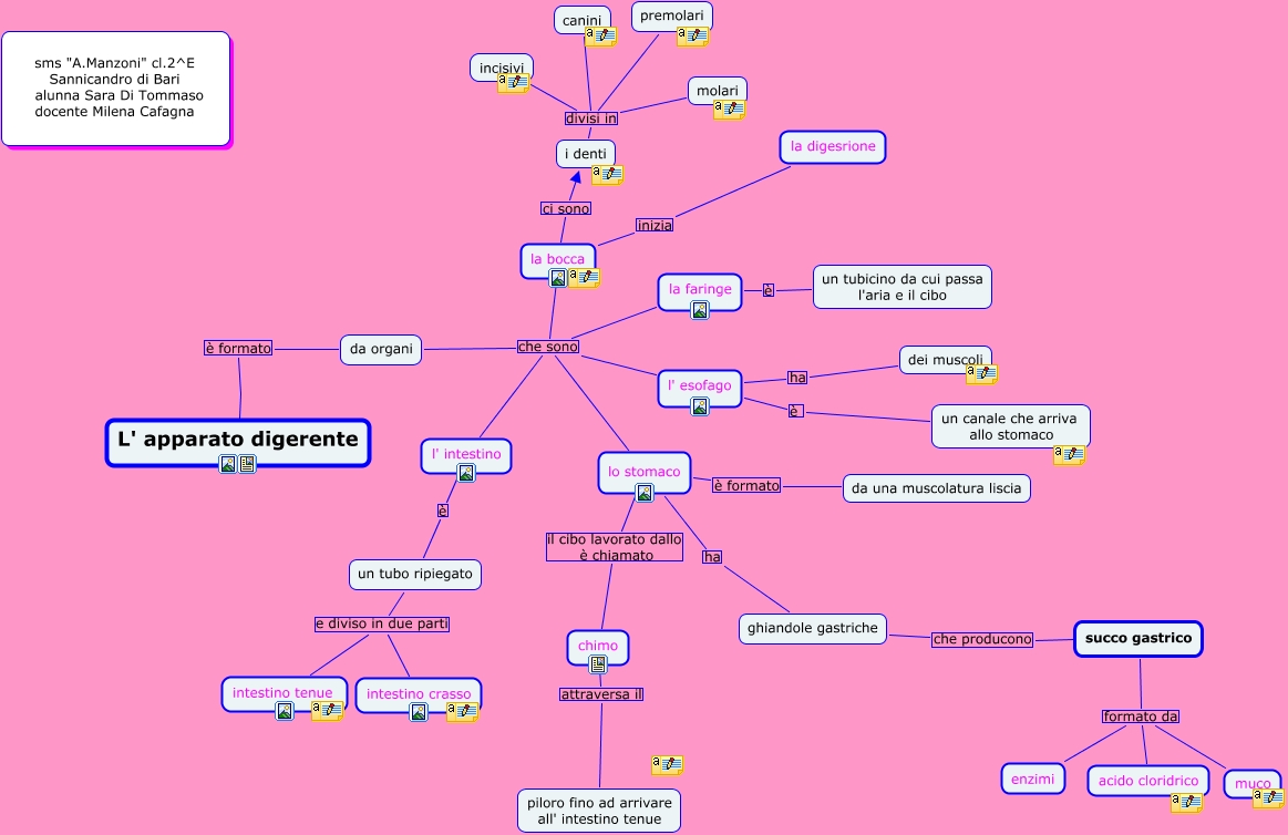 Questa Cmap, creata con IHMC CmapTools, contiene informazioni relative a: apparato digerente (sara di tommaso), lo stomaco ha ghiandole gastriche, la faringe è un tubicino da cui passa l'aria e il cibo, i denti divisi in molari, da organi che sono l' intestino, un tubo ripiegato e diviso in due parti intestino crasso, L' apparato digerente è formato da organi, lo stomaco è formato da una muscolatura liscia, da organi che sono la faringe, da organi che sono la bocca, da organi che sono lo stomaco, i denti divisi in premolari, l' intestino è un tubo ripiegato, l' esofago è un canale che arriva allo stomaco, i denti divisi in incisivi, da organi che sono l' esofago, succo gastrico formato da enzimi, lo stomaco il cibo lavorato dallo è chiamato chimo, un tubo ripiegato e diviso in due parti intestino tenue, chimo attraversa il piloro fino ad arrivare all' intestino tenue, l' esofago ha dei muscoli