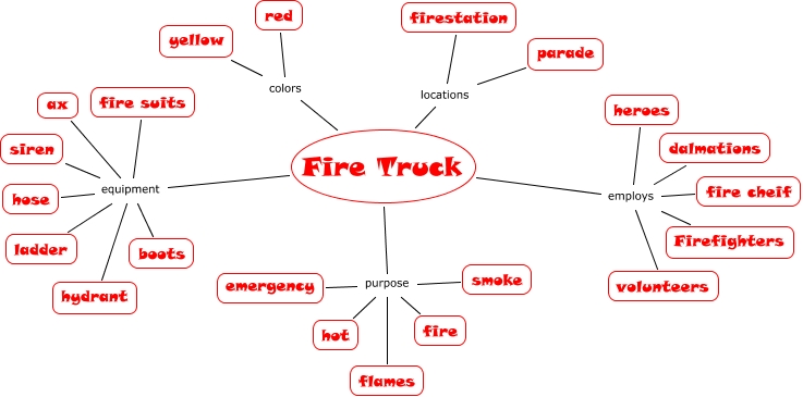 This Concept Map, created with IHMC CmapTools, has information related to: Fire Truck, Fire Truck employs volunteers, Fire Truck purpose emergency, Fire Truck employs heroes, Fire Truck employs fire cheif, Fire Truck purpose fire, Fire Truck locations parade, Fire Truck employs Firefighters, Fire Truck equipment fire suits, Fire Truck colors red, Fire Truck equipment hose, Fire Truck purpose flames, Fire Truck employs dalmations, Fire Truck colors yellow, Fire Truck equipment ladder, Fire Truck equipment ax, Fire Truck equipment siren, Fire Truck purpose smoke, Fire Truck equipment boots, Fire Truck equipment hydrant, Fire Truck purpose hot
