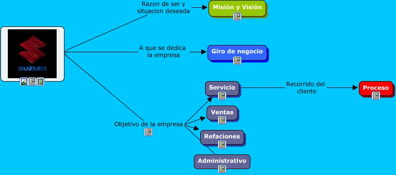 Este Cmap, tiene información relacionada con: Suzuki tabasco, Servicio Recorrido del cliente Proceso, Objetivo de la empresa Servicio, A que se dedica la empresa Giro de negocio, Razon de ser y situacion deseada Misión y Visión, Objetivo de la empresa Administrativo, Objetivo de la empresa Ventas, Objetivo de la empresa Refaciones