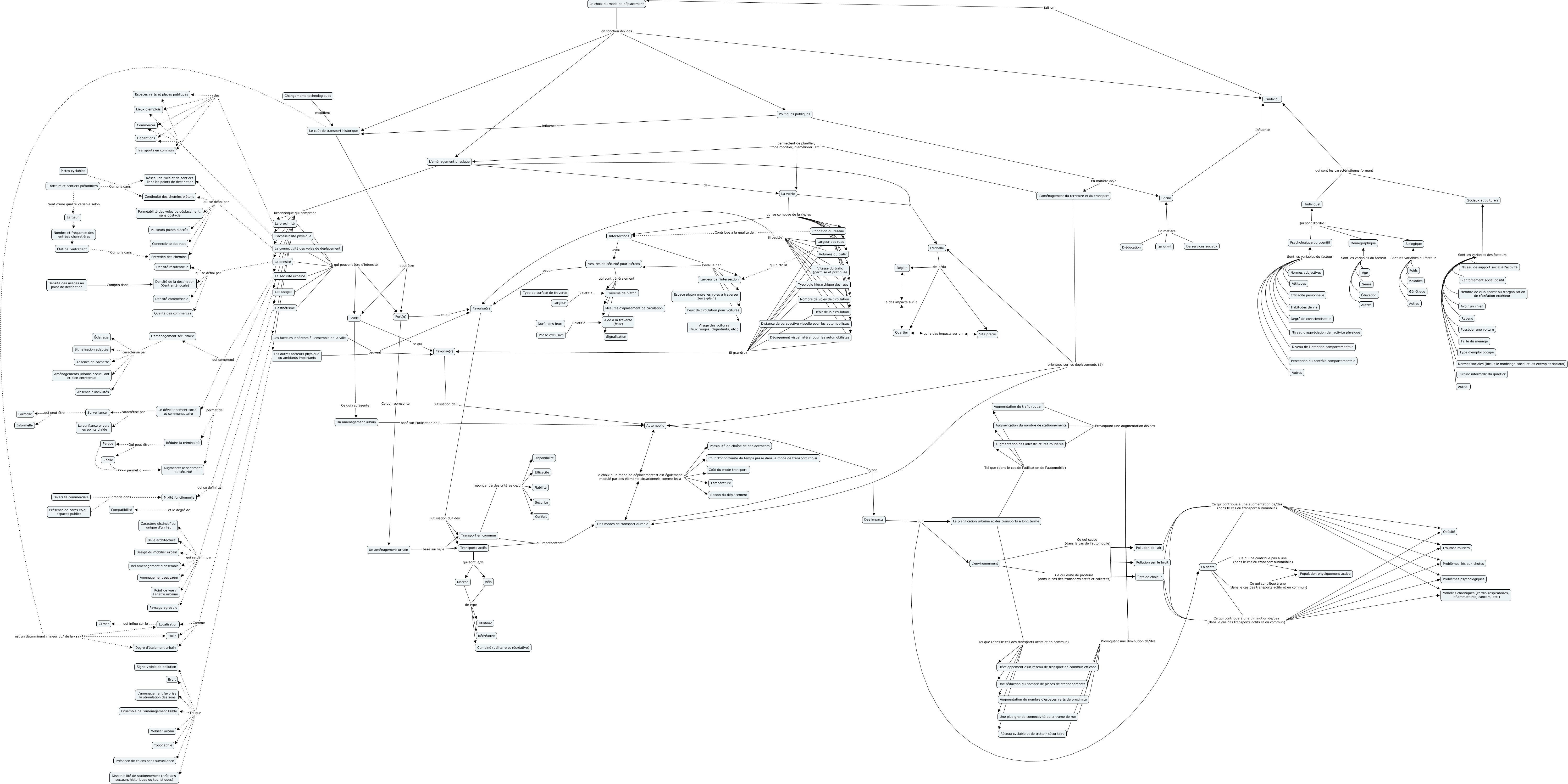 Cette carte de concepts créée avec IHMC CmapTools traite de: révision 5 sans annotation, Îlots de chaleur Ce qui contribue à une diminution de/des (dans le cas des transports actifs et en commun) Obésité, Augmentation du nombre d'espaces verts de proximité Provoquant une diminution de/des Îlots de chaleur, L'échelle de la/du Site précis, L'accessibilité physique aux Commerces, Une réduction du nombre de places de stationnements Provoquant une diminution de/des Pollution de l'air, La planification urbaine et des transports à long terme Tel que (dans le cas des transports actifs et en commun) Une plus grande connectivité de la trame de rue, Pistes cyclables Compris dans Continuité des chemins piétons, L'environnement Ce qui cause (dans le cas de l'automobile) Pollution par le bruit, La planification urbaine et des transports à long terme Tel que (dans le cas de l'utilisation de l'automobile) Augmentation du nombre de stationnements, Intersections s'évalue par Espace piéton entre les voies à traverser (terre-plein), L'accessibilité physique qui peuvent être d'intensité Fort(e), Réduire la criminalité Qui peut être Perçue, Largeur des rues Si grand(e) Favorise(r), Îlots de chaleur Ce qui contribue à une augmentation de/des (dans le cas du transport automobile) Problèmes liés aux chutes, Typologie hiérarchique des rues Si petit(e) Favorise(r), La densité qui peuvent être d'intensité Fort(e), L'environnement Ce qui évite de produire (dans le cas des transports actifs et collectifs) Îlots de chaleur, Niveau de l'intention comportementale Sont les variables du facteur Psychologique ou cognitif, Augmentation du nombre d'espaces verts de proximité Provoquant une diminution de/des Pollution de l'air, Mesures de sécurité pour piétons qui sont généralement Aide à la traverse (feux)