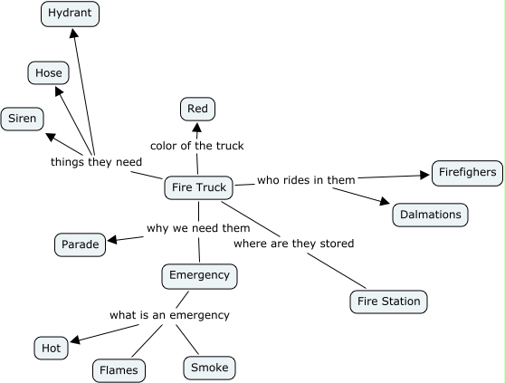 This Concept Map, created with IHMC CmapTools, has information related to: Fire Truck, Fire Truck where are they stored Fire Station, Fire Truck who rides in them Dalmations, Fire Truck color of the truck Red, Fire Truck things they need Siren, Emergency what is an emergency Hot, Emergency what is an emergency Smoke, Emergency what is an emergency Flames, Fire Truck things they need Hose, Fire Truck why we need them Parade, Fire Truck why we need them Emergency, Fire Truck who rides in them Firefighers, Fire Truck things they need Hydrant