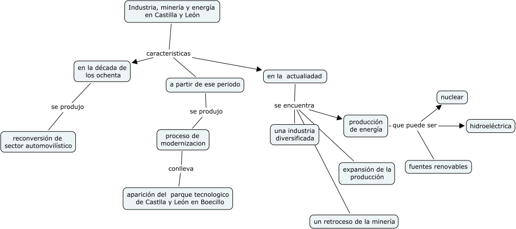Este Cmap, tiene información relacionada con: castilla y león, Industria, minería y energía en Castilla y León caracteristicas en la actualiadad, Industria, minería y energía en Castilla y León caracteristicas en la década de los ochenta, a partir de ese periodo se produjo proceso de modernizacion, en la actualiadad se encuentra expansión de la producción, producción de energía que puede ser nuclear, en la actualiadad se encuentra una industria diversificada, en la actualiadad se encuentra producción de energía, en la década de los ochenta se produjo reconversión de sector automovilístico, producción de energía que puede ser hidroeléctrica, proceso de modernizacion conlleva aparición del parque tecnologico de Castlla y León en Boecillo, Industria, minería y energía en Castilla y León caracteristicas a partir de ese periodo, producción de energía que puede ser fuentes renovables, en la actualiadad se encuentra un retroceso de la minería