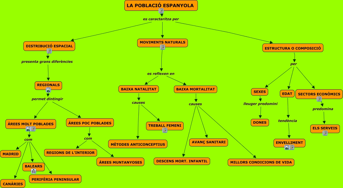Este Cmap, tiene información relacionada con: Anàlisis de piràmide de població.Activitat, MOVIMENTS NATURALS es reflexen en BAIXA NATALITAT, BAIXA MORTALITAT causes MILLORS CONDICIONS DE VIDA, ESTRUCTURA O COMPOSICIÓ per SECTORS ECONÒMICS, BAIXA NATALITAT causes MÈTODES ANTICONCEPTIUS, ÀREES POC POBLADES com ÀREES MUNTANYOSES, ÀREES MOLT POBLADES com BALEARS, ESTRUCTURA O COMPOSICIÓ per SEXES, DISTRIBUCIÓ ESPACIAL presenta grans diferències REGIONALS, LA POBLACIÓ ESPANYOLA es caractaritza per DISTRIBUCIÓ ESPACIAL, ÀREES MOLT POBLADES com PERIFÈRIA PENINSULAR, BAIXA MORTALITAT causes AVANÇ SANITARI, MOVIMENTS NATURALS es reflexen en BAIXA MORTALITAT, SECTORS ECONÒMICS predomina ELS SERVEIS, ESTRUCTURA O COMPOSICIÓ per EDAT, REGIONALS permet dintingir ÀREES POC POBLADES, ÀREES POC POBLADES com REGIONS DE L'INTERIOR, BAIXA NATALITAT causes TREBALL FEMENI, ÀREES MOLT POBLADES com MADRID, EDAT tendència ENVELLIMENT, REGIONALS permet dintingir ÀREES MOLT POBLADES