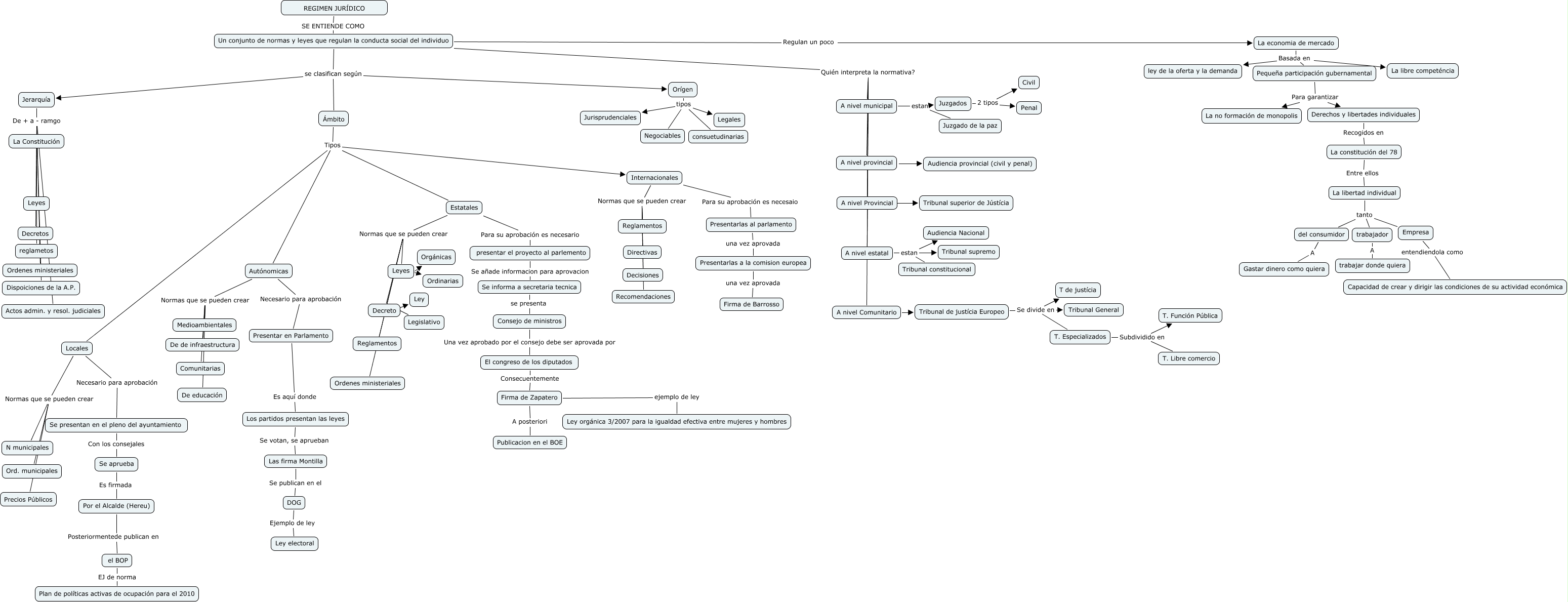 Este Cmap, tiene información relacionada con: Mapa conceptual 1, Autónomicas Normas que se pueden crear De de infraestructura, Un conjunto de normas y leyes que regulan la conducta social del individuo se clasifican según Ámbito, Locales Normas que se pueden crear Precios Públicos, trabajador A trabajar donde quiera, Estatales Normas que se pueden crear Leyes, presentar el proyecto al parlemento Se añade informacion para aprovacion Se informa a secretaria tecnica, A nivel estatal estan Audiencia Nacional, Se aprueba Es firmada Por el Alcalde (Hereu), A nivel Provincial Tribunal superior de Jústícia, Decreto Ley, REGIMEN JURÍDICO SE ENTIENDE COMO Un conjunto de normas y leyes que regulan la conducta social del individuo, Un conjunto de normas y leyes que regulan la conducta social del individuo Quién interpreta la normativa? A nivel estatal, Presentarlas al parlamento una vez aprovada Presentarlas a la comision europea, La economia de mercado Basada en La libre competéncia, Estatales Normas que se pueden crear Decreto, Autónomicas Necesario para aprobación Presentar en Parlamento, Pequeña participación gubernamental Para garantizar Derechos y libertades individuales, Juzgados 2 tipos Penal, Jerarquía De + a - ramgo Dispoiciones de la A.P., Estatales Normas que se pueden crear Ordenes ministeriales