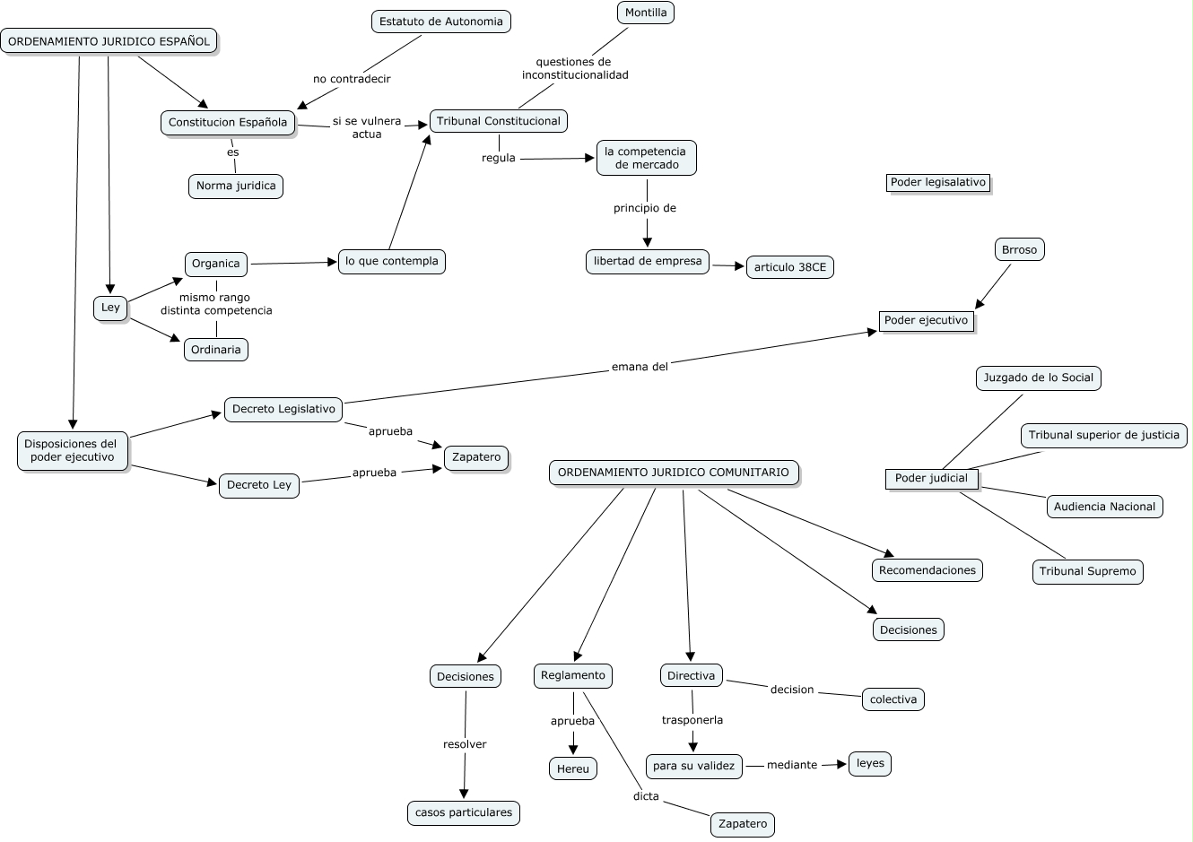 Este Cmap, tiene información relacionada con: Regimen juridico1, Directiva trasponerla para su validez, Disposiciones del poder ejecutivo ???? Decreto Ley, ORDENAMIENTO JURIDICO COMUNITARIO ???? Directiva, ORDENAMIENTO JURIDICO ESPAÑOL ???? Constitucion Española, Ordinaria mismo rango distinta competencia Organica, Directiva decision colectiva, ORDENAMIENTO JURIDICO ESPAÑOL ???? Ley, Tribunal Constitucional regula la competencia de mercado, Reglamento dicta Zapatero, para su validez mediante leyes, Disposiciones del poder ejecutivo ???? Decreto Legislativo, ORDENAMIENTO JURIDICO COMUNITARIO ???? Decisiones, Ley ???? Ordinaria, Brroso ???? Poder ejecutivo, ORDENAMIENTO JURIDICO COMUNITARIO ???? Reglamento, Constitucion Española es Norma juridica, la competencia de mercado principio de libertad de empresa, Decisiones resolver casos particulares, Decreto Ley aprueba Zapatero, ORDENAMIENTO JURIDICO ESPAÑOL ???? Disposiciones del poder ejecutivo