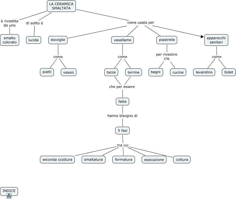 Questa Cmap, creata con IHMC CmapTools, contiene informazioni relative a: ceramica 1, 5 fasi tra cui seconda ccottura, piastrelle per rivestire i/le bagni, LA CERAMICA SMALTATA viene usata per vasellame, tazze che per essere fatte, LA CERAMICA SMALTATA viene usata per apparecchi sanitari, LA CERAMICA SMALTATA di solito è lucida, LA CERAMICA SMALTATA viene usata per stoviglie, vasellame come terrine, terrine che per essere fatte, 5 fasi tra cui formatura, 5 fasi tra cui smaltatura, LA CERAMICA SMALTATA viene usata per piastrelle, apparecchi sanitari come lavandino, 5 fasi tra cui essicazione, piastrelle per rivestire i/le cucine, apparecchi sanitari come bidet, LA CERAMICA SMALTATA è rivestita da uno smalto colorato, stoviglie come vassoi, stoviglie come piatti, fatte hanno bisogno di 5 fasi