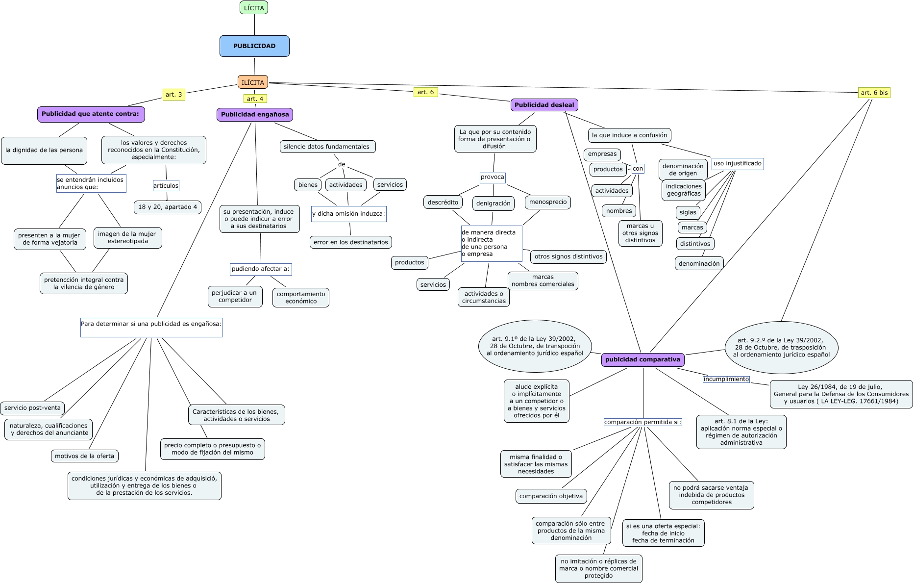Este Cmap, tiene información relacionada con: PUBLICIDAD, silencie datos fundamentales de servicios, Publicidad desleal ???? La que por su contenido forma de presentación o difusión, los valores y derechos reconocidos en la Constitución, especialmente: se entendrán incluidos anuncios que: presenten a la mujer de forma vejatoria, descrédito de manera directa o indirecta de una persona o empresa actividades o circumstancias, su presentación, induce o puede indicur a error a sus destinatarios pudiendo afectar a: perjudicar a un competidor, menosprecio de manera directa o indirecta de una persona o empresa marcas nombres comerciales, la que induce a confusión uso injustificado distintivos, la que induce a confusión uso injustificado indicaciones geográficas, Publicidad que atente contra: ???? los valores y derechos reconocidos en la Constitución, especialmente:, los valores y derechos reconocidos en la Constitución, especialmente: se entendrán incluidos anuncios que: la dignidad de las persona, menosprecio de manera directa o indirecta de una persona o empresa otros signos distintivos, publcidad comparativa ???? art. 9.1º de la Ley 39/2002, 28 de Octubre, de transpoción al ordenamiento jurídico español, su presentación, induce o puede indicur a error a sus destinatarios pudiendo afectar a: comportamiento económico, silencie datos fundamentales de actividades, menosprecio de manera directa o indirecta de una persona o empresa servicios, los valores y derechos reconocidos en la Constitución, especialmente: artículos 18 y 20, apartado 4, los valores y derechos reconocidos en la Constitución, especialmente: se entendrán incluidos anuncios que: imagen de la mujer estereotipada, menosprecio de manera directa o indirecta de una persona o empresa productos, presenten a la mujer de forma vejatoria ???? pretencción integral contra la vilencia de género, la que induce a confusión uso injustificado siglas