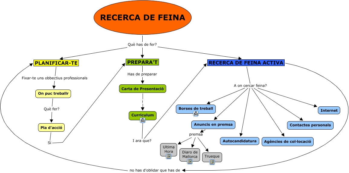 Este Cmap, tiene información relacionada con: Recerca de feina, PREPARA'T Has de preparar Carta de Presentació, RECERCA DE FEINA ACTIVA A on cercar feina? Autocandidatura, RECERCA DE FEINA Què has de fer? RECERCA DE FEINA ACTIVA, RECERCA DE FEINA ACTIVA A on cercar feina? Anuncis en premsa, PLANIFICAR-TE Fixar-te uns obbectius professionals On puc treballr, On puc treballr Què fer? Pla d'acció, RECERCA DE FEINA ACTIVA A on cercar feina? Internet, RECERCA DE FEINA Què has de fer? PLANIFICAR-TE, Anuncis en premsa premsa Diaro de Mallorca, RECERCA DE FEINA ACTIVA A on cercar feina? Agències de col·locació, Curriculum I ara que? RECERCA DE FEINA ACTIVA, RECERCA DE FEINA ACTIVA A on cercar feina? Contactes personals, Anuncis en premsa premsa Ultima Hora, Pla d'acció Si PREPARA'T, RECERCA DE FEINA ACTIVA no has d'oblidar que has de PLANIFICAR-TE, RECERCA DE FEINA ACTIVA A on cercar feina? Borses de treball, Anuncis en premsa premsa Trueque, Carta de Presentació i Curriculum, Carta de Presentació i Curriculum, RECERCA DE FEINA Què has de fer? PREPARA'T