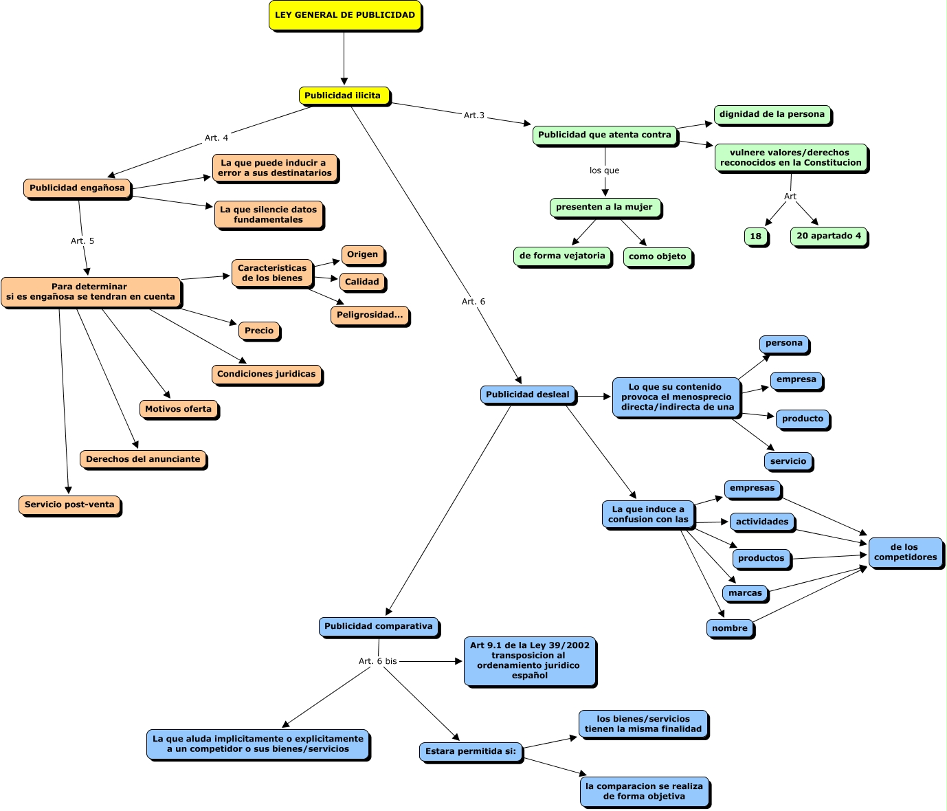 Este Cmap, tiene información relacionada con: Publicidad, La que induce a confusion con las actividades, Publicidad que atenta contra ???? dignidad de la persona, Publicidad desleal ???? La que induce a confusion con las, marcas ???? de los competidores, Lo que su contenido provoca el menosprecio directa/indirecta de una ???? persona, vulnere valores/derechos reconocidos en la Constitucion Art 18, La que induce a confusion con las ???? empresas, La que induce a confusion con las ???? productos, Para determinar si es engañosa se tendran en cuenta ???? Condiciones juridicas, Para determinar si es engañosa se tendran en cuenta ???? Servicio post-venta, Para determinar si es engañosa se tendran en cuenta ???? Derechos del anunciante, Publicidad comparativa Art. 6 bis La que aluda implicitamente o explicitamente a un competidor o sus bienes/servicios, La que induce a confusion con las ???? nombre, Caracteristicas de los bienes ???? Calidad, LEY GENERAL DE PUBLICIDAD ???? Publicidad ilicita, Caracteristicas de los bienes ???? Peligrosidad..., actividades ???? de los competidores, Publicidad comparativa Art. 6 bis Art 9.1 de la Ley 39/2002 transposicion al ordenamiento juridico español, Publicidad que atenta contra los que presenten a la mujer, Estara permitida si: ???? la comparacion se realiza de forma objetiva