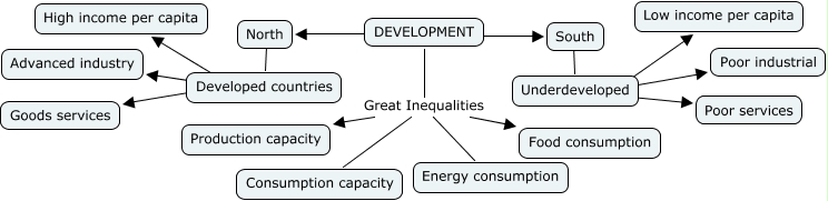 Este Cmap, tiene información relacionada con: Development, Developed countries ???? Advanced industry, DEVELOPMENT Great Inequalities Energy consumption, DEVELOPMENT Great Inequalities Consumption capacity, North ???? Developed countries, Developed countries ???? High income per capita, DEVELOPMENT Great Inequalities Production capacity, Underdeveloped ???? Poor services, DEVELOPMENT Great Inequalities Food consumption, South ???? Underdeveloped, Underdeveloped ???? Low income per capita, DEVELOPMENT ???? North, Underdeveloped ???? Poor industrial, DEVELOPMENT ???? South, Developed countries ???? Goods services