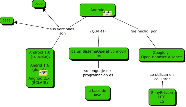 Este Cmap, tiene información relacionada con: EDWIN, Es un SistemaOperativo movil libre su lenguaje de programacion es a base de Java, Android sus verciones son ????, Android sus verciones son Android 1.0 (cupcake), Andrid 1.6 (donut), Android 2.X (ÉCLAIR), Android ¿Que es? Es un SistemaOperativo movil libre, Google y Open Handset Alliance se utilizan en celulares SonyErisson HTC LG, Android fue hecho por Google y Open Handset Alliance, Android sus verciones son ????