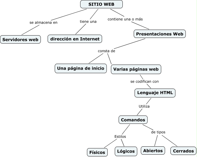 Este Cmap, tiene información relacionada con: BlancaDuarte-v1, Presentaciones Web consta de Una página de inicio, Presentaciones Web consta de Varias páginas web, SITIO WEB se almacena en Servidores web, Comandos Estilos Lógicos, Comandos Estilos Físicos, SITIO WEB tiene una dirección en Internet, Lenguaje HTML Utiliza Comandos, Comandos de tipos Cerrados, Comandos de tipos Abiertos, Varias páginas web se codifican con Lenguaje HTML, SITIO WEB contiene una o más Presentaciones Web