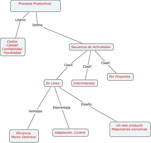 Este Cmap, tiene información relacionada con: Mario GIni - v1, En Línea Diseño Un solo producto Maquinarías exclusivas, Secuencia de Actividades Clasif. En Línea, En Línea Desventaja Adaptación, Control, Secuencia de Actividades Clasif. Intermitentes, Procesos Productivos Logros Costos Calidad Confiabilidad Flexibilidad, Procesos Productivos Define Secuencia de Actividades, Secuencia de Actividades Clasif. Por Proyectos, En Línea Ventajas Eficiencia Menor Destreza