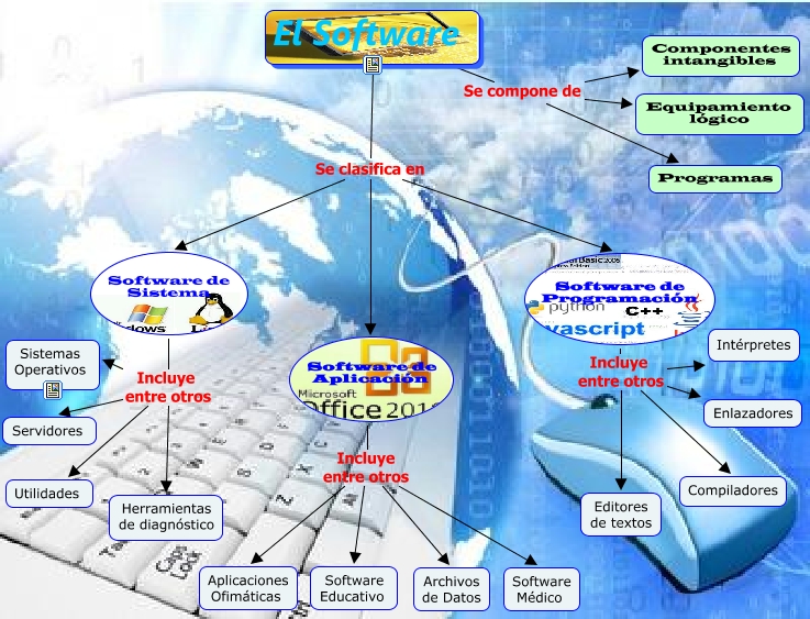 Este Cmap, tiene información relacionada con: HildaSaucedo-v2, El Software Se clasifica en Software de Sistema, Software de Sistema Incluye entre otros Utilidades, Software de Aplicación Incluye entre otros Software Médico, El Software Se compone de Programas, Software de Programación Incluye entre otros Intérpretes, Software de Sistema Incluye entre otros Herramientas de diagnóstico, Software de Programación Incluye entre otros Compiladores, Software de Sistema Incluye entre otros Sistemas Operativos, El Software Se clasifica en Software de Aplicación, Software de Aplicación Incluye entre otros Aplicaciones Ofimáticas, El Software Se compone de Componentes intangibles, Software de Sistema Incluye entre otros Servidores, Software de Programación Incluye entre otros Enlazadores, Software de Programación Incluye entre otros Editores de textos, Software de Aplicación Incluye entre otros Software Educativo, El Software Se compone de Equipamiento lógico, El Software Se clasifica en Software de Programación, Software de Aplicación Incluye entre otros Archivos de Datos