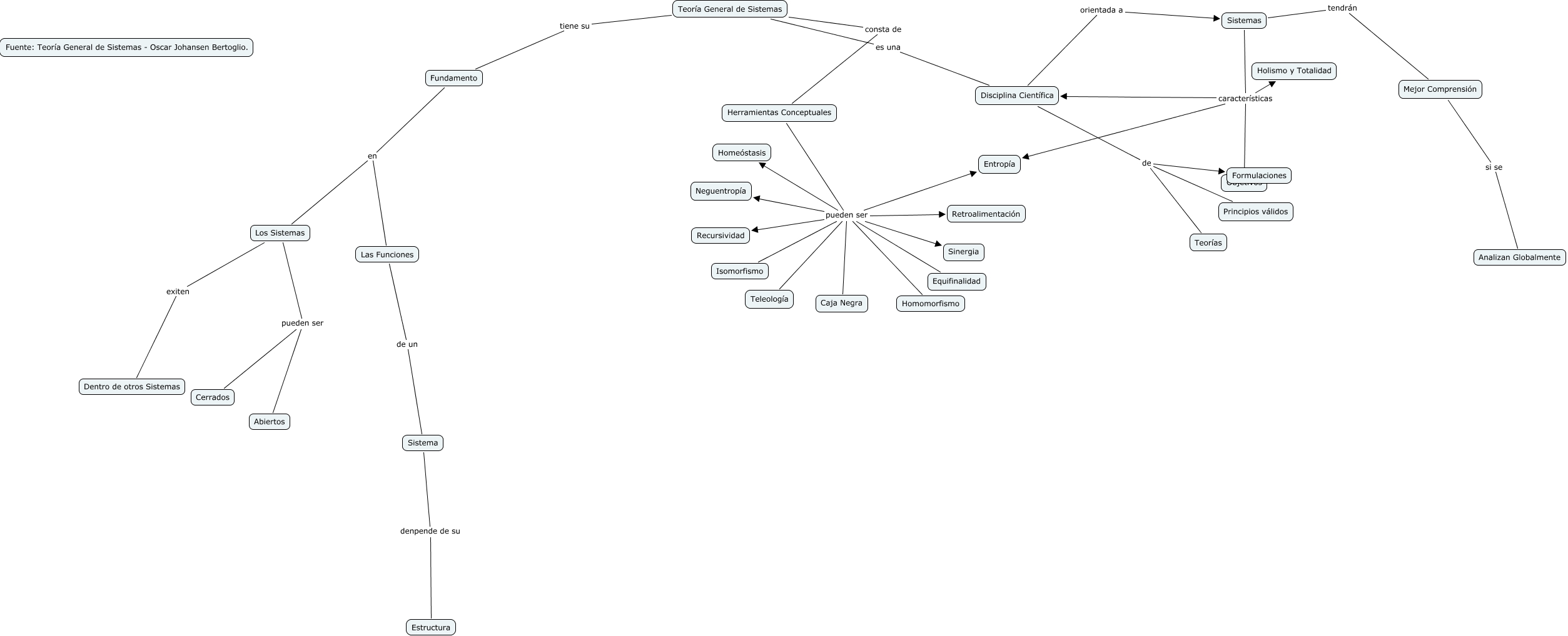 Este Cmap, tiene información relacionada con: AnaLizRamos-v1, Teoría General de Sistemas es una Disciplina Científica, Sistemas características Disciplina Científica, Herramientas Conceptuales pueden ser Neguentropía, Los Sistemas pueden ser Abiertos, Herramientas Conceptuales pueden ser Homeóstasis, Sistemas características Holismo y Totalidad, Sistemas características Entropía, Herramientas Conceptuales pueden ser Isomorfismo, Fundamento en Los Sistemas, Herramientas Conceptuales pueden ser Entropía, Sistema denpende de su Estructura, Las Funciones de un Sistema, Herramientas Conceptuales pueden ser Sinergia, Sistemas características Objetivos, Herramientas Conceptuales pueden ser Retroalimentación, Disciplina Científica de Principios válidos, Disciplina Científica de Teorías, Teoría General de Sistemas consta de Herramientas Conceptuales, Fundamento en Las Funciones, Herramientas Conceptuales pueden ser Teleología