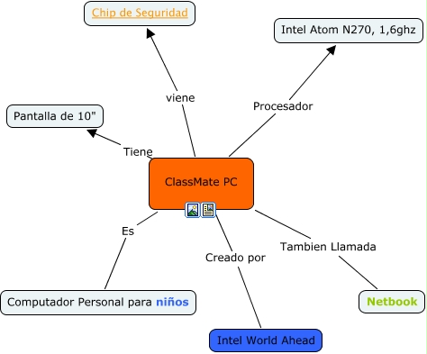 Este Cmap, tiene información relacionada con: MarcoTrovato-v2, ClassMate PC Tiene Pantalla de 10", ClassMate PC Creado por Intel World Ahead, ClassMate PC Tambien Llamada Netbook, ClassMate PC Procesador Intel Atom N270, 1,6ghz, ClassMate PC viene Chip de Seguridad, ClassMate PC Es Computador Personal para niños