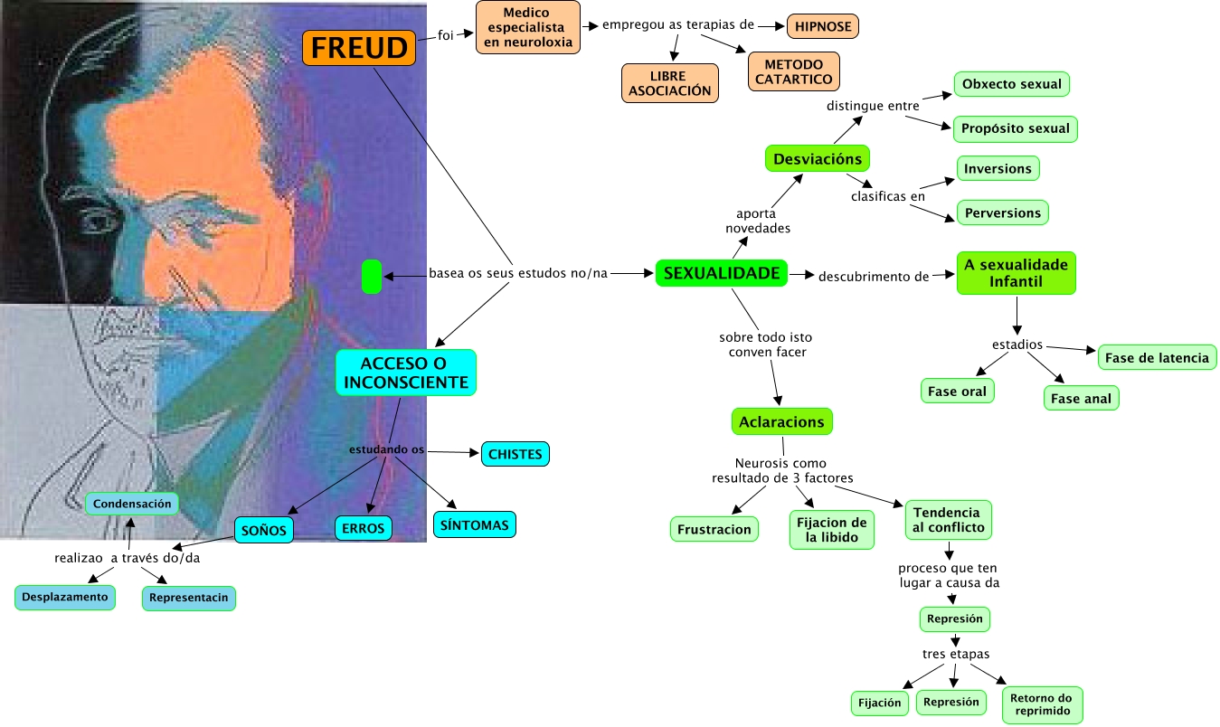 Este Cmap, tiene información relacionada con: freud por reyes, Desviacións distingue entre Obxecto sexual, FREUD basea os seus estudos no/na ACCESO O INCONSCIENTE, A sexualidade Infantil estadios Fase de latencia, Desviacións clasificas en Inversions, Medico especialista en neuroloxia empregou as terapias de LIBRE ASOCIACIÓN, ACCESO O INCONSCIENTE estudando os ERROS, SOÑOS realizao a través do/da Desplazamento, ACCESO O INCONSCIENTE estudando os SOÑOS, A sexualidade Infantil estadios Fase anal, Aclaracions Neurosis como resultado de 3 factores Fijacion de la libido, Aclaracions Neurosis como resultado de 3 factores Frustracion, FREUD foi Medico especialista en neuroloxia, Desviacións distingue entre Propósito sexual, SEXUALIDADE aporta novedades Desviacións, Represión tres etapas Represión, Medico especialista en neuroloxia empregou as terapias de HIPNOSE, ACCESO O INCONSCIENTE estudando os SÍNTOMAS, SOÑOS realizao a través do/da Condensación, SEXUALIDADE descubrimento de A sexualidade Infantil, ACCESO O INCONSCIENTE estudando os CHISTES