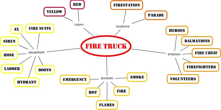 This Concept Map, created with IHMC CmapTools, has information related to: Firetruck, Fire Truck purpose emergency, Fire Truck employs volunteers, Fire Truck purpose fire, Fire Truck employs fire cheif, Fire Truck employs heroes, Fire Truck locations parade, Fire Truck employs Firefighters, Fire Truck equipment fire suits, Fire Truck employs dalmations, Fire Truck purpose flames, Fire Truck equipment hose, Fire Truck colors red, Fire Truck colors yellow, Fire Truck equipment ladder, Fire Truck purpose smoke, Fire Truck equipment siren, Fire Truck equipment ax, Fire Truck purpose hot, Fire Truck equipment hydrant, Fire Truck equipment boots