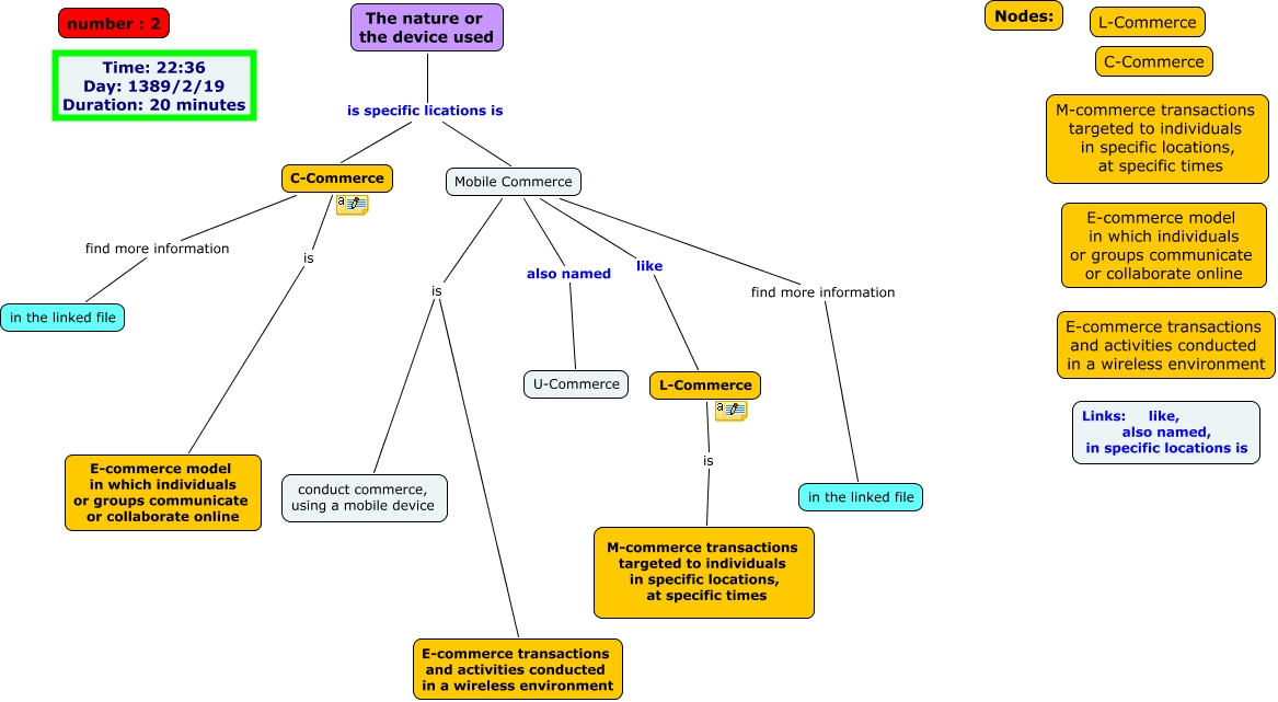 This Concept Map, created with IHMC CmapTools, has information related to: EC categories by the nature or the device used, Mobile Commerce like L-Commerce, Mobile Commerce find more information in the linked file, Mobile Commerce also named U-Commerce, C-Commerce is E-commerce model in which individuals or groups communicate or collaborate online, The nature or the device used is specific lications is Mobile Commerce, Mobile Commerce is conduct commerce, using a mobile device, The nature or the device used is specific lications is C-Commerce, C-Commerce find more information in the linked file, Mobile Commerce is E-commerce transactions and activities conducted in a wireless environment, L-Commerce is M-commerce transactions targeted to individuals in specific locations, at specific times