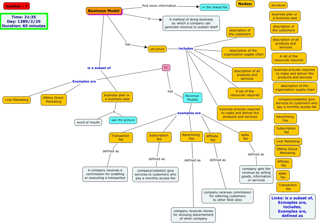 This Concept Map, created with IHMC CmapTools, has information related to: Business Model, description of the organization supply chain includes A list of the resources required, description of the organization supply chain includes business process required to make and deliver the products and services, Business Model find more information in the linked file, Revenue Models examples are sales fee, Revenue Models examples are Advertising Fee, Business Model has structure, Business Model is a subset of business plan or a business case, Subscription fee examples are Advertising Fee, business plan or a business case is see the picture, Transaction fee defined as A company receives a commission for enabling or executing a transaction, business plan or a business case is word of mouth, description of the organization supply chain includes Revenue Models, structure includes business process required to make and deliver the products and services, description of the customers includes Revenue Models, Business Model is A method of doing business by which a company can generate revenue to sustain itself, Subscription fee examples are Affiliate fee, Transaction fee examples are sales fee, EC has Revenue Models, sales fee defined as company gets the revenue by selling goods, information or services, Advertising Fee defined as company receives money for showing Advertisment of other company