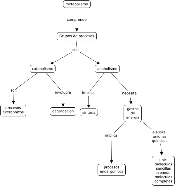Este Cmap, tiene información relacionada con: Sin Título 1, metabolismo comprende Grupos de procesos, anabolismo necesita gastos de energia, anabolismo implica sintesis, Grupos de procesos son anabolismo, catabolismo involucra degradacion, catabolismo son procesos exergonicos, gastos de energia elabora uniones quimicas unir moleculas sencillas creando moleculas complejas, Grupos de procesos son catabolismo, gastos de energia implica procesos endergonicos