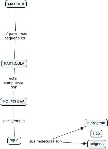 Este Cmap, tiene información relacionada con: camilas a, agua sus moleculas son oxigeno, agua sus moleculas son hidrogeno, MATERIA la`parte mas pequeña es PARTICULA, MOLECULAS por ejemplo agua, PARTICULA esta compuesta por MOLECULAS