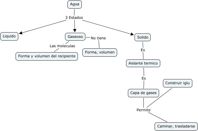 Este Cmap, tiene información relacionada con: los estados del agua, Gaseoso Las moleculas Forma y volumen del recipiente, Capa de gases Permite Construir iglu, Agua 3 Estados Gaseoso, Agua 3 Estados Solido, Solido Es Aislante termico, Capa de gases Permite Caminar, trasladarse, Aislante termico Es Capa de gases, Gaseoso No tiene Forma, volumen, Agua 3 Estados Liquido