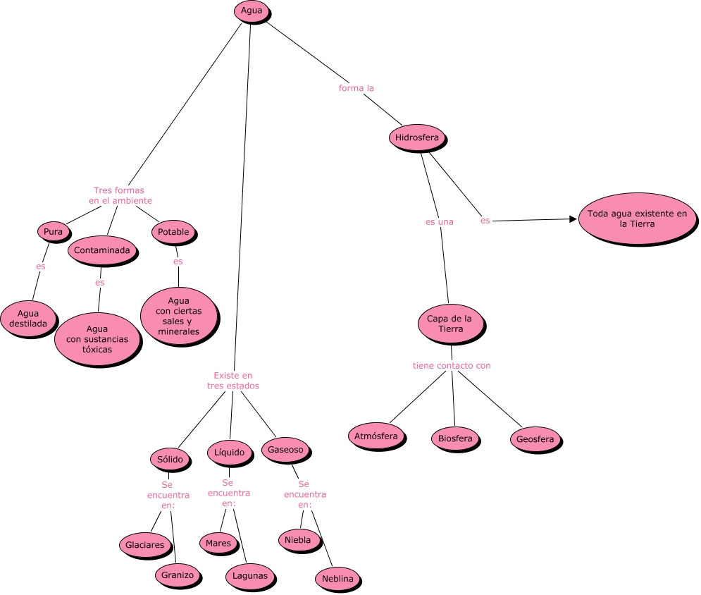 Este Cmap, tiene información relacionada con: nadia y raisa, Sólido Se encuentra en: Granizo, Agua Existe en tres estados Sólido, Contaminada es Agua con sustancias tóxicas, Agua Tres formas en el ambiente Contaminada, Agua Existe en tres estados Gaseoso, Sólido Se encuentra en: Glaciares, Capa de la Tierra tiene contacto con Biosfera, Capa de la Tierra tiene contacto con Atmósfera, Hidrosfera es una Capa de la Tierra, Agua Tres formas en el ambiente Potable, Pura es Agua destilada, Potable es Agua con ciertas sales y minerales, Agua Tres formas en el ambiente Pura, Capa de la Tierra tiene contacto con Geosfera, Hidrosfera es Toda agua existente en la Tierra, Líquido Se encuentra en: Mares, Líquido Se encuentra en: Lagunas, Gaseoso Se encuentra en: Neblina, Agua forma la Hidrosfera, Gaseoso Se encuentra en: Niebla