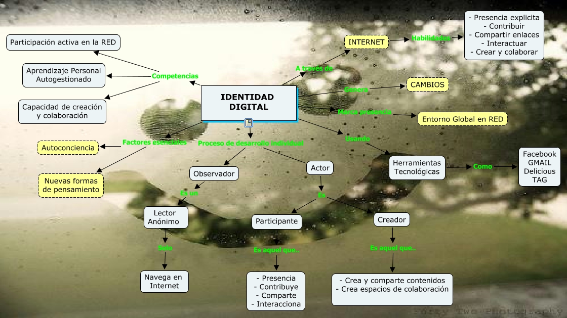 Este Cmap, tiene información relacionada con: Identidad digital, IDENTIDAD DIGITAL Competencias Participación activa en la RED, IDENTIDAD DIGITAL Marca presencia Entorno Global en RED, IDENTIDAD DIGITAL A través de INTERNET, Lector Anónimo Solo Navega en Internet, IDENTIDAD DIGITAL Usando Herramientas Tecnológicas, Actor Es Participante, INTERNET Habilidades - Presencia explicita - Contribuir - Compartir enlaces - Interactuar - Crear y colaborar, IDENTIDAD DIGITAL Genera CAMBIOS, IDENTIDAD DIGITAL Factores esenciales Autoconciencia, IDENTIDAD DIGITAL Proceso de desarrollo individual Observador, Herramientas Tecnológicas Como Facebook GMAIL Delicious TAG, IDENTIDAD DIGITAL Competencias Capacidad de creación y colaboración, IDENTIDAD DIGITAL Factores esenciales Nuevas formas de pensamiento, Creador Es aquel que.. - Crea y comparte contenidos - Crea espacios de colaboración, IDENTIDAD DIGITAL Competencias Aprendizaje Personal Autogestionado, IDENTIDAD DIGITAL Proceso de desarrollo individual Actor, Actor Es Creador, Participante Es aquel que.. - Presencia - Contribuye - Comparte - Interacciona, Observador Es un Lector Anónimo