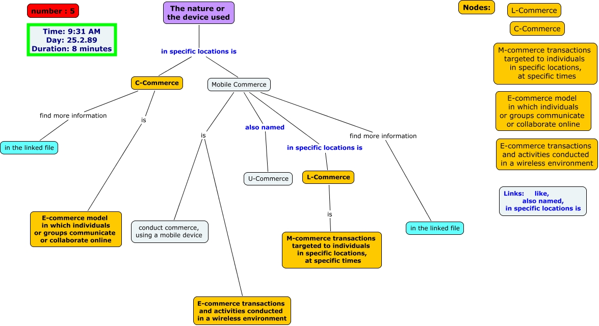 This Concept Map, created with IHMC CmapTools, has information related to: EC categories by the nature or the device used, Mobile Commerce in specific locations is L-Commerce, Mobile Commerce find more information in the linked file, Mobile Commerce also named U-Commerce, C-Commerce is E-commerce model in which individuals or groups communicate or collaborate online, The nature or the device used in specific locations is Mobile Commerce, Mobile Commerce is conduct commerce, using a mobile device, The nature or the device used in specific locations is C-Commerce, C-Commerce find more information in the linked file, Mobile Commerce is E-commerce transactions and activities conducted in a wireless environment, L-Commerce is M-commerce transactions targeted to individuals in specific locations, at specific times