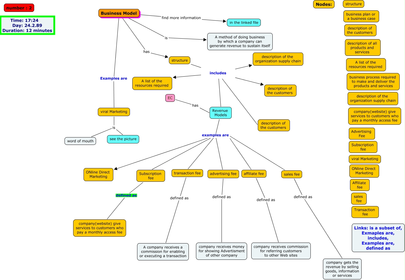 This Concept Map, created with IHMC CmapTools, has information related to: Business Model, structure includes A list of the resources required, transaction fee defined as A company receives a commission for enabling or executing a transaction, Business Model Examples are viral Marketing, structure includes description of the customers, affiliate fee defined as company receives commission for referring customers to other Web sites, Revenue Models examples are transaction fee, structure includes description of the customers, Business Model find more information in the linked file, advertising fee defined as company receives money for showing Advertisment of other company, structure includes Revenue Models, Subscription fee defined as company(website) give services to customers who pay a monthly access fee, viral Marketing is word of mouth, Revenue Models examples are advertising fee, Business Model is A method of doing business by which a company can generate revenue to sustain itself, structure includes description of the organization supply chain, Revenue Models examples are affiliate fee, Revenue Models examples are sales fee, EC has Revenue Models, viral Marketing is see the picture, Revenue Models examples are Subscription fee