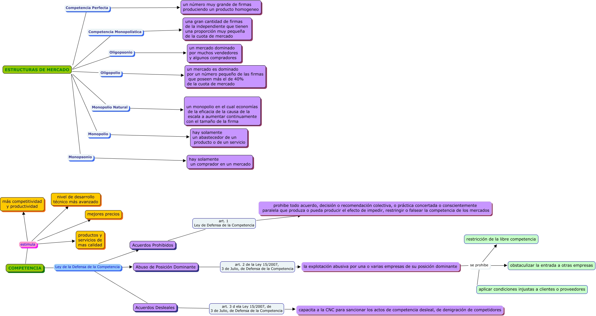 Este Cmap, tiene información relacionada con: CASO 5-6, COMPETENCIA estimula productos y servicios de mas calidad, Acuerdos Prohibidos art. 1 Ley de Defensa de la Competencia prohibe todo acuerdo, decisión o recomendación colectiva, o práctica concertada o conscientemente paralela que produza o pueda producir el efecto de impedir, restringir o falsear la competencia de los mercados, ESTRUCTURAS DE MERCADO Monopsonio hay solamente un comprador en un mercado, la explotación abusiva por una o varias empresas de su posición dominante se prohibe aplicar condiciones injustas a clientes o proveedores, ESTRUCTURAS DE MERCADO Monopolio hay solamente un abastecedor de un producto o de un servicio, COMPETENCIA estimula mejores precios, la explotación abusiva por una o varias empresas de su posición dominante se prohibe obstaculizar la entrada a otras empresas, ESTRUCTURAS DE MERCADO Competencia Perfecta un número muy grande de firmas produciendo un producto homogeneo, ESTRUCTURAS DE MERCADO Oligopolio un mercado es dominado por un número pequeño de las firmas que poseen más el de 40% de la cuota de mercado, ESTRUCTURAS DE MERCADO Oligopsonio un mercado dominado por muchos vendedores y algunos compradores, ESTRUCTURAS DE MERCADO Competencia Monopolística una gran cantidad de firmas de la independiente que tienen una proporción muy pequeña de la cuota de mercado, la explotación abusiva por una o varias empresas de su posición dominante se prohibe restricción de la libre competencia, Acuerdos Desleales art. 3 d ela Ley 15/2007, de 3 de Julio, de Defensa de la Competencia capacita a la CNC para sancionar los actos de competencia desleal, de denigración de competidores, COMPETENCIA Ley de la Defensa de la Competencia Acuerdos Desleales, COMPETENCIA estimula más competitividad y productividad, COMPETENCIA Ley de la Defensa de la Competencia Abuso de Posición Dominante, COMPETENCIA Ley de la Defensa de la Competencia Acuerdos Prohibidos, ESTRUCTURAS DE MERCADO Monopolio Natural un monopolio en el cual economías de la eficacia de la causa de la escala a aumentar continuamente con el tamaño de la firma, Abuso de Posición Dominante art. 2 de la Ley 15/2007, 3 de Julio, de Defensa de la Competencia la explotación abusiva por una o varias empresas de su posición dominante, COMPETENCIA estimula nivel de desarrollo técnico más avanzado