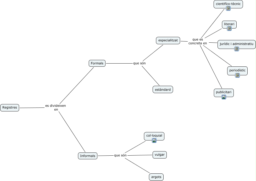Aquest mapa conceptual conté informació relacionada amb: Presentació tipus de registres, Registres es divideixen en Formals, Formals que són especialitzat, Formals que són estàndard, especialitzat que es concreta en literari, especialitzat que es concreta en cientifíco-tècnic, Informals que són col·loquial, especialitzat que es concreta en jurídic i administratiu, especialitzat que es concreta en publicitari, Registres es divideixen en Informals, Informals que són argots, Informals que són vulgar, especialitzat que es concreta en periodístic