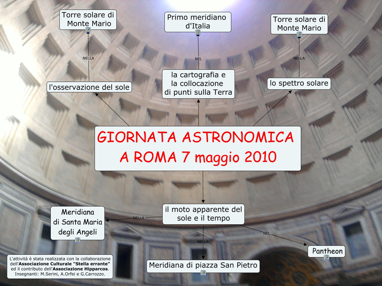 Questa Cmap, creata con IHMC CmapTools, contiene informazioni relative a: roma-visita astronomica, lo spettro solare NELLA Torre solare di Monte Mario, GIORNATA ASTRONOMICA A ROMA 7 maggio 2010 ???? il moto apparente del sole e il tempo, l'osservazione del sole NELLA Torre solare di Monte Mario, il moto apparente del sole e il tempo NEL Pantheon, GIORNATA ASTRONOMICA A ROMA 7 maggio 2010 ???? lo spettro solare, il moto apparente del sole e il tempo NELLA Meridiana di piazza San Pietro, GIORNATA ASTRONOMICA A ROMA 7 maggio 2010 ???? la cartografia e la collocazione di punti sulla Terra, GIORNATA ASTRONOMICA A ROMA 7 maggio 2010 ???? l'osservazione del sole, la cartografia e la collocazione di punti sulla Terra NEL Primo meridiano d'Italia, il moto apparente del sole e il tempo NELLA Meridiana di Santa Maria degli Angeli