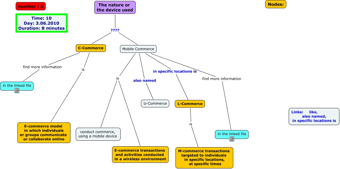 This Concept Map, created with IHMC CmapTools, has information related to: EC categories by the nature or the device used - Faraji, Mobile Commerce in specific locations is L-Commerce, Mobile Commerce also named U-Commerce, Mobile Commerce find more information in the linked file, The nature or the device used ???? Mobile Commerce, C-Commerce is E-commerce model in which individuals or groups communicate or collaborate online, Mobile Commerce is conduct commerce, using a mobile device, C-Commerce find more information in the linked file, The nature or the device used ???? C-Commerce, Mobile Commerce is E-commerce transactions and activities conducted in a wireless environment, L-Commerce is M-commerce transactions targeted to individuals in specific locations, at specific times
