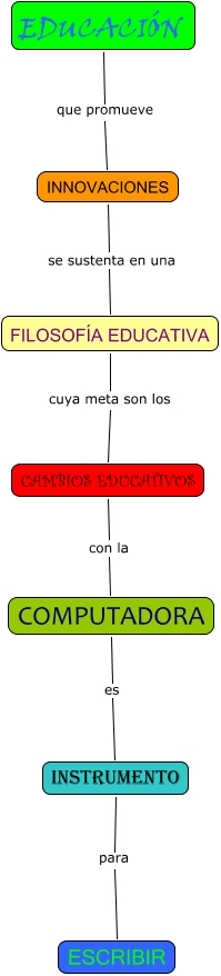 Este Cmap, tiene información relacionada con: Mapa conceptual.situación educativa.Matilde Franco, INSTRUMENTO para ESCRIBIR, INNOVACIONES se sustenta en una FILOSOFÍA EDUCATIVA, CAMBIOS EDUCATIVOS con la COMPUTADORA, FILOSOFÍA EDUCATIVA cuya meta son los CAMBIOS EDUCATIVOS, EDUCACIÓN que promueve INNOVACIONES, COMPUTADORA es INSTRUMENTO