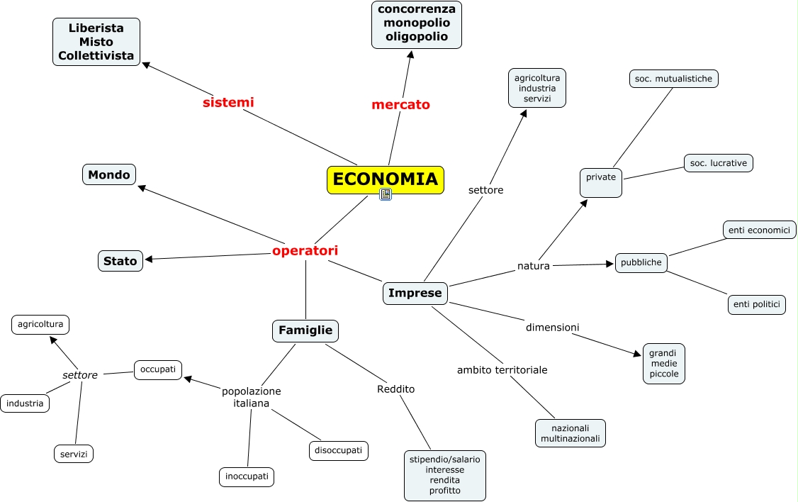 Questa Cmap, creata con IHMC CmapTools, contiene informazioni relative a: economia, ECONOMIA operatori Famiglie, Famiglie popolazione italiana disoccupati, ECONOMIA mercato concorrenza monopolio oligopolio, ECONOMIA operatori Imprese, private ???? soc. lucrative, occupati settore industria, pubbliche ???? enti politici, Imprese settore agricoltura industria servizi, Imprese natura pubbliche, ECONOMIA operatori Stato, Famiglie popolazione italiana inoccupati, private ???? soc. mutualistiche, ECONOMIA sistemi Liberista Misto Collettivista, Imprese natura private, Famiglie popolazione italiana occupati, private ???? soc. mutualistiche, occupati settore agricoltura, occupati settore servizi, pubbliche ???? enti economici, Famiglie Reddito stipendio/salario interesse rendita profitto