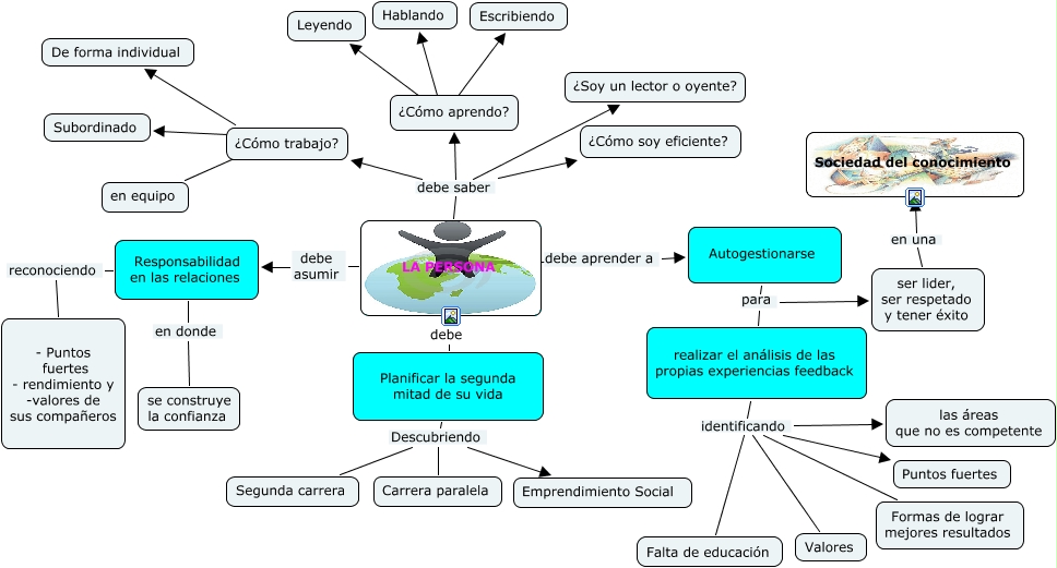 Este Cmap, tiene información relacionada con: gestionarse a uno mismo, Planificar la segunda mitad de su vida Descubriendo Segunda carrera, LA PERSONA debe saber ¿Soy un lector o oyente?, ¿Cómo trabajo? en equipo, realizar el análisis de las propias experiencias feedback identificando Falta de educación, LA PERSONA debe saber ¿Cómo aprendo?, ¿Cómo aprendo? ???? Leyendo, ¿Cómo trabajo? ???? De forma individual, LA PERSONA debe aprender a Autogestionarse, realizar el análisis de las propias experiencias feedback identificando las áreas que no es competente, realizar el análisis de las propias experiencias feedback identificando Valores, LA PERSONA debe saber ¿Cómo trabajo?, Planificar la segunda mitad de su vida Descubriendo Emprendimiento Social, realizar el análisis de las propias experiencias feedback identificando Formas de lograr mejores resultados, LA PERSONA debe saber ¿Cómo soy eficiente?, LA PERSONA debe asumir Responsabilidad en las relaciones, ¿Cómo aprendo? ???? Escribiendo, Responsabilidad en las relaciones en donde se construye la confianza, Planificar la segunda mitad de su vida Descubriendo Carrera paralela, Responsabilidad en las relaciones reconociendo - Puntos fuertes - rendimiento y -valores de sus compañeros, LA PERSONA debe Planificar la segunda mitad de su vida