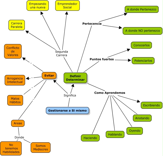 Este Cmap, tiene información relacionada con: Autogestion-v1, Definir Determinar Segunda Carrera Emprendedor Social, Gestionarse a Si mismo Significa Definir Determinar, Evitar - Malos Hábitos, Definir Determinar Segunda Carrera Carrera Paralela, Areas Donde No tenemos Habilidades, Definir Determinar Pertecencia A donde NO pertenezco, Definir Determinar Como Aprendemos Hablando, Definir Determinar Como Aprendemos Escribiendo, Evitar - Arrogancia Intelectual, Evitar - Areas, Gestionarse a Si mismo Significa Evitar, Definir Determinar Pertecencia A donde Pertenezco, Evitar - Conflicto de Valores, Definir Determinar Como Aprendemos Oyendo, Definir Determinar Puntos fuertes Conocerlos, Definir Determinar Segunda Carrera Empezando una nueva, Definir Determinar Como Aprendemos Haciendo, Definir Determinar Como Aprendemos Anotando, Definir Determinar Puntos fuertes Potenciarlos, Areas Donde Somos Mediocres
