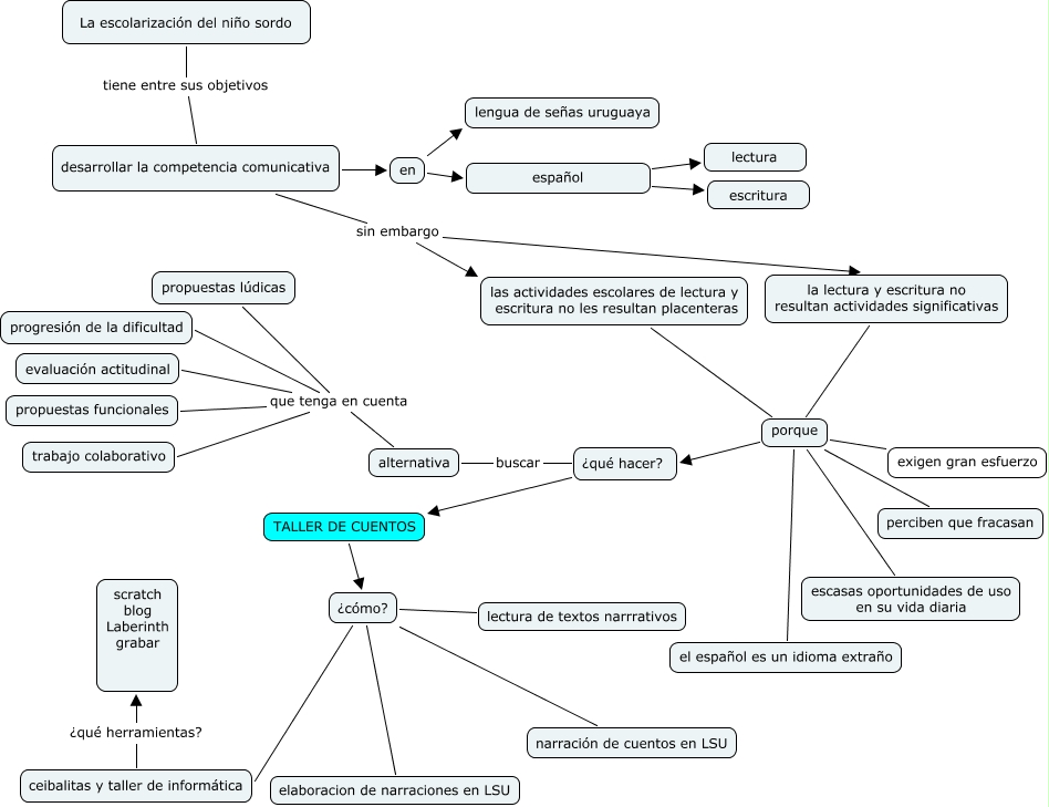 Este Cmap, tiene información relacionada con: isabel ramirez trabajofinal, porque ¿qué hacer?, alternativa que tenga en cuenta progresión de la dificultad, desarrollar la competencia comunicativa en, ceibalitas y taller de informática ¿qué herramientas? scratch blog Laberinth grabar, alternativa que tenga en cuenta trabajo colaborativo, la lectura y escritura no resultan actividades significativas porque, español lectura, en español, ¿qué hacer? buscar alternativa, ¿cómo? elaboracion de narraciones en LSU, ¿cómo? lectura de textos narrrativos, porque perciben que fracasan, alternativa que tenga en cuenta evaluación actitudinal, alternativa que tenga en cuenta propuestas lúdicas, español escritura, desarrollar la competencia comunicativa sin embargo las actividades escolares de lectura y escritura no les resultan placenteras, ¿cómo? narración de cuentos en LSU, TALLER DE CUENTOS ¿cómo?, porque escasas oportunidades de uso en su vida diaria, ¿cómo? ceibalitas y taller de informática