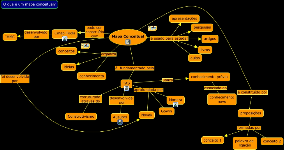 Esse mapa conceitual, produzido no IHMC CmapTools, tem a informação relacionada a: O que é mapa conceitual, proposições formadas por conceito 1, TAS aprofundada por Novak, Mapa Conceitual é usado para estudar apresentações, Mapa Conceitual foi desenvolvido por Novak, Mapa Conceitual é usado para estudar artigos, Mapa Conceitual organiza conceitos, proposições formadas por conceito 2, Mapa Conceitual pode ser construído com Cmap Tools, TAS utiliza conhecimento prévio, Mapa Conceitual é fundamentado pela TAS, TAS aprofundada por Moreira, proposições formadas por palavra de ligação, Mapa Conceitual organiza conhecimento, Cmap Tools desenvolvido por IHMC, Mapa Conceitual é constituído por proposições, TAS estruturada através do Construtivismo, TAS aprofundada por Gowin, Mapa Conceitual é usado para estudar livros, conhecimento prévio associado ao conhecimento novo, Mapa Conceitual é usado para estudar aulas
