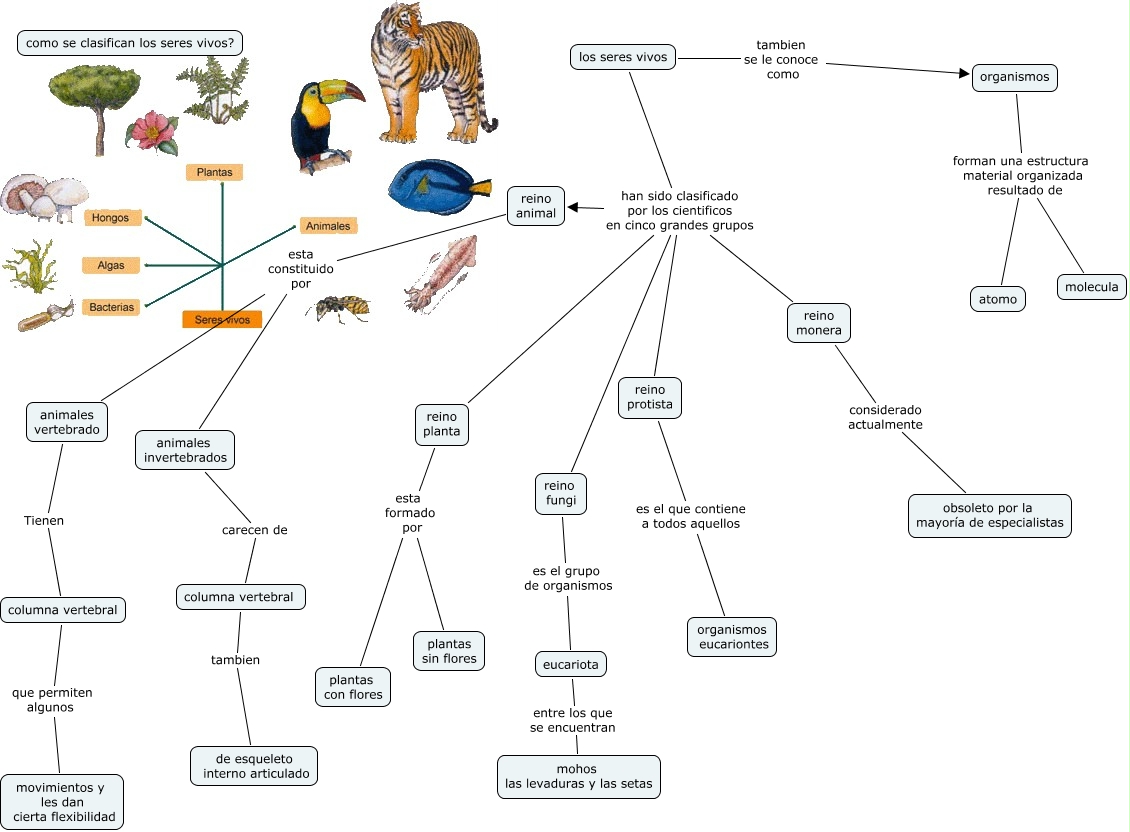 Este Cmap, tiene información relacionada con: los seres vivos 8ºB, los seres vivos han sido clasificado por los cientificos en cinco grandes grupos reino animal, animales invertebrados carecen de columna vertebral, los seres vivos han sido clasificado por los cientificos en cinco grandes grupos reino fungi, eucariota entre los que se encuentran mohos las levaduras y las setas, columna vertebral tambien de esqueleto interno articulado, los seres vivos tambien se le conoce como organismos, columna vertebral que permiten algunos movimientos y les dan cierta flexibilidad, reino fungi es el grupo de organismos eucariota, reino animal esta constituido por animales invertebrados, los seres vivos han sido clasificado por los cientificos en cinco grandes grupos reino monera, animales vertebrado Tienen columna vertebral, reino animal esta constituido por animales vertebrado, los seres vivos han sido clasificado por los cientificos en cinco grandes grupos reino planta, reino monera considerado actualmente obsoleto por la mayoría de especialistas, reino protista es el que contiene a todos aquellos organismos eucariontes, reino planta esta formado por plantas con flores, organismos forman una estructura material organizada resultado de molecula, los seres vivos han sido clasificado por los cientificos en cinco grandes grupos reino protista, reino planta esta formado por plantas sin flores, organismos forman una estructura material organizada resultado de atomo