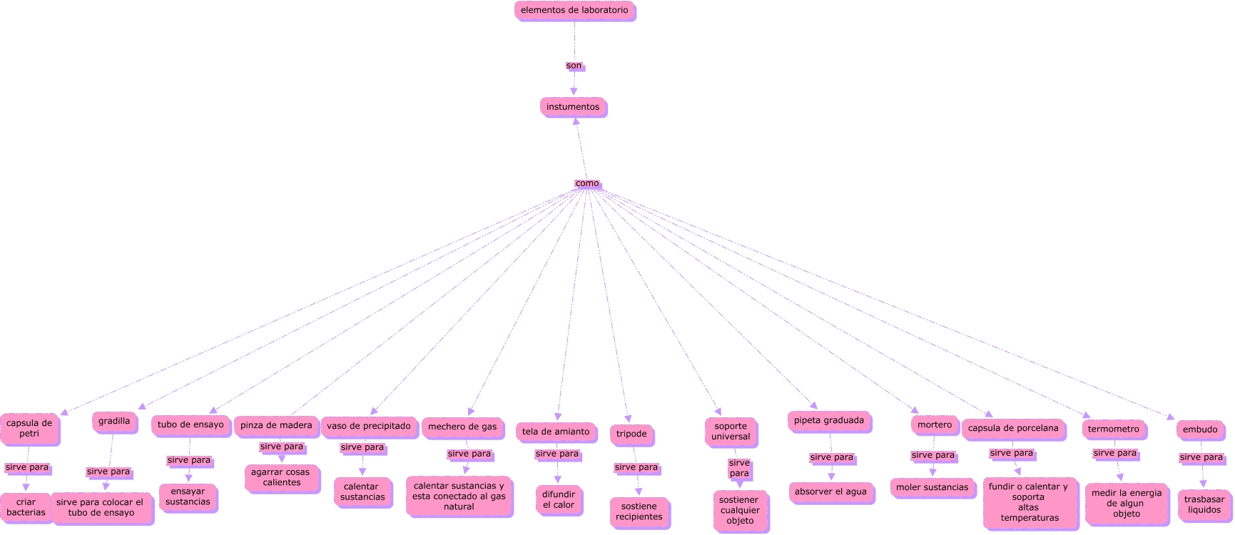 Este Cmap, tiene información relacionada con: cmaps_trabajo_1[1].cmapLourde, pinza de madera como embudo, pinza de madera como mortero, pinza de madera como gradilla, tubo de ensayo sirve para ensayar sustancias, pipeta graduada sirve para absorver el agua, pinza de madera como soporte universal, pinza de madera como mechero de gas, mechero de gas sirve para calentar sustancias y esta conectado al gas natural, soporte universal sirve para sostiener cualquier objeto, termometro sirve para medir la energia de algun objeto, capsula de petri sirve para criar bacterias, elementos de laboratorio son instumentos, pinza de madera sirve para agarrar cosas calientes, pinza de madera como instumentos, vaso de precipitado sirve para calentar sustancias, gradilla sirve para sirve para colocar el tubo de ensayo, mortero sirve para moler sustancias, pinza de madera como capsula de porcelana, capsula de porcelana sirve para fundir o calentar y soporta altas temperaturas, tripode sirve para sostiene recipientes