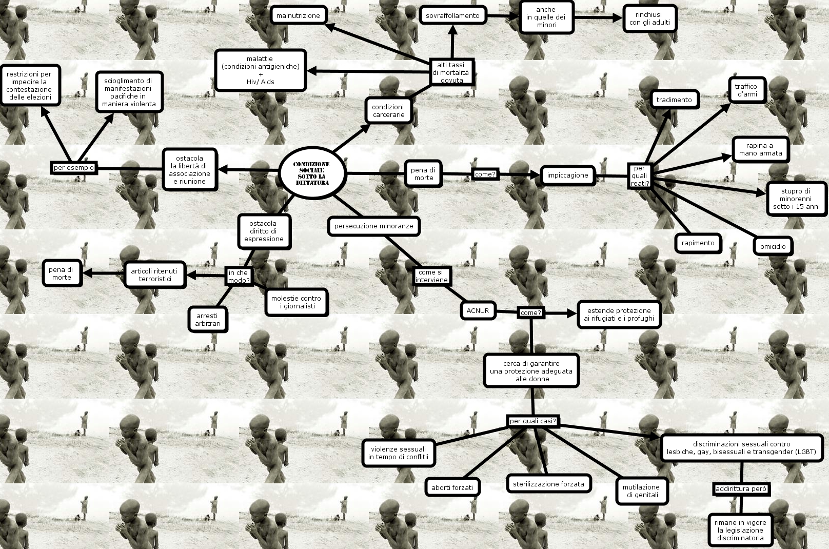libertà paola, condizione sociale sotto la dittatura ???? persecuzione minoranze, ACNUR come? cerca di garantire una protezione adeguata alle donne, ACNUR come? estende protezione ai rifugiati e i profughi, sovraffollamento ???? anche in quelle dei minori, condizione sociale sotto la dittatura ???? ostacola la libertà di associazione e riunione, pena di morte come? impiccagione, cerca di garantire una protezione adeguata alle donne per quali casi? sterilizzazione forzata, impiccagione per quali reati? rapimento, condizioni carcerarie alti tassi di mortalità dovuta malnutrizione, ostacola la libertà di associazione e riunione per esempio restrizioni per impedire la contestazione delle elezioni