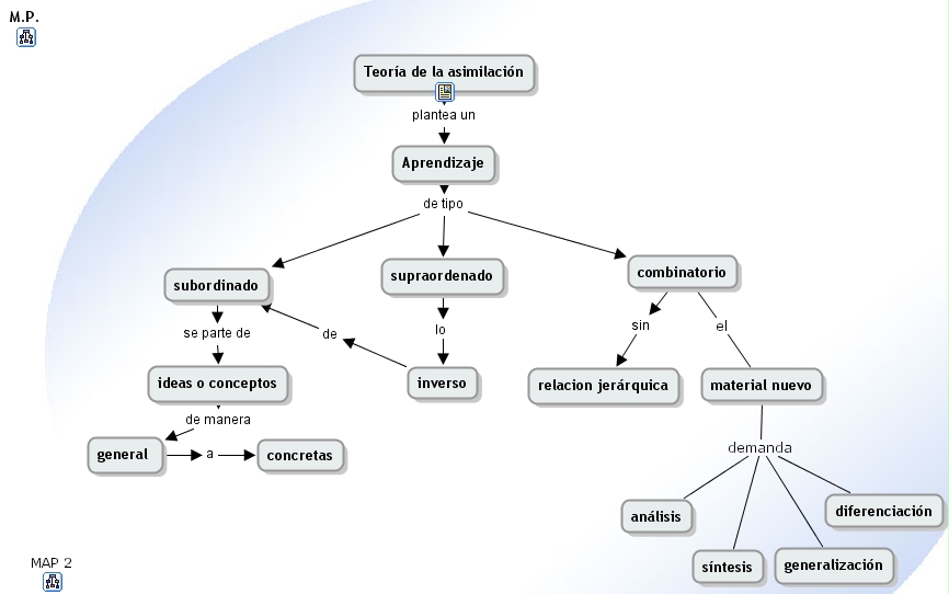 teor�a de la asimilaci�n 7, map 2, relacion jer�rquica, aprendizaje, an�lisis, general , teor�a de la asimilaci�n, generalizaci�n, diferenciaci�n, inverso, subordinado, concretas, m.p., ideas o conceptos, combinatorio, material nuevo, supraordenado, s�ntesis