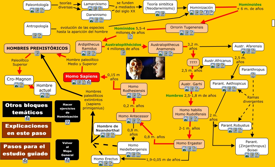 Hominización, Orrorin Tugenensis Homínidos 5,5-4 millones de años Ardipithecus Ramidus, Homo Ergaster 0,8 m. años Homo Antecessor, Paranthropus Ramas divergentes Parant. Aethiopicus, Australopithecus Anamensis 3,2 m. años Austr. Afarensis, ???? 2,5 m. años Austr. Garhi, Cro-Magnon ???? Hombre actual, Paranthropus Ramas divergentes Parant.Robustus, Homo Antecessor 0,2 m. años Homo Rodhesiensis, Parant. Aethiopicus 2 m. años Parant.Robustus, Homo Sapiens Hombre paleolítico Medio y Superior HOMBRES PREHISTÓRICOS