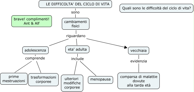 difficoltà ciclo di vita, eta' adulta include ulteriori modifiche corporee, cambiamenti fisici riguardano vecchiaia, vecchiaia evidenzia comparsa di malattie dovute alla tarda età, LE DIFFICOLTA' DEL CICLO DI VITA sono cambiamenti fisici, cambiamenti fisici riguardano adolescenza, cambiamenti fisici riguardano eta' adulta, eta' adulta include menopausa, adolescenza comprende prime mestruazioni, adolescenza comprende trasformazioni corporee